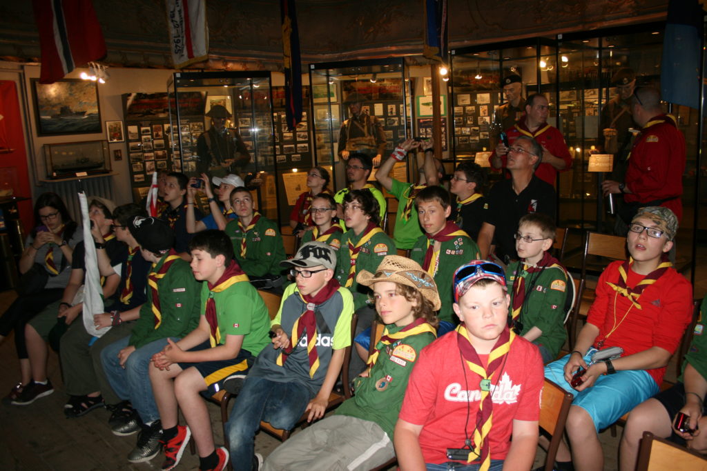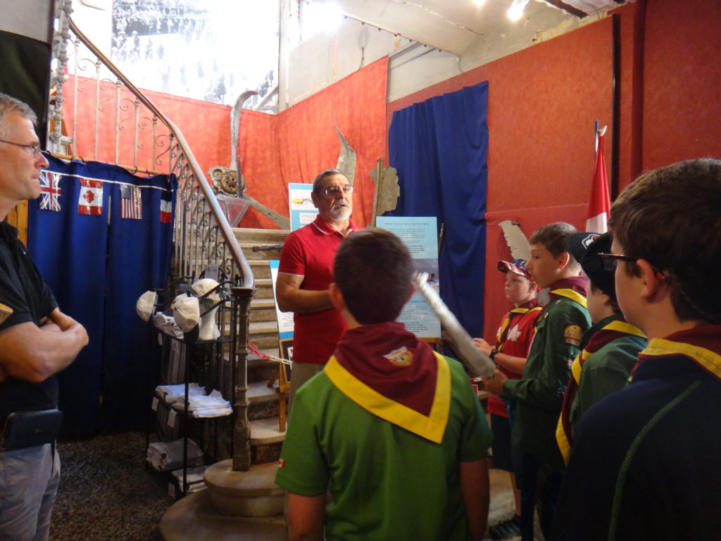 If that wasn’t enough the video depicted the raid in vivid detail.  The rocky beach at Dieppe is very distinct, and even though the video was black & white and 73 years old, you could clearly see that the beach with all the bodies, all the death and tragedy was the exact spot we ran into the ocean the previous night.  There was a scene that showed a giant pile of bodies on the exact staircase that we stopped at to dry off after a wonderful night on the beach.  It really, really brought everything in to a sharp focus that we all felt.  The Scouts were silently hugging each other and we all had a new appreciation for just how special our late night dip really was.