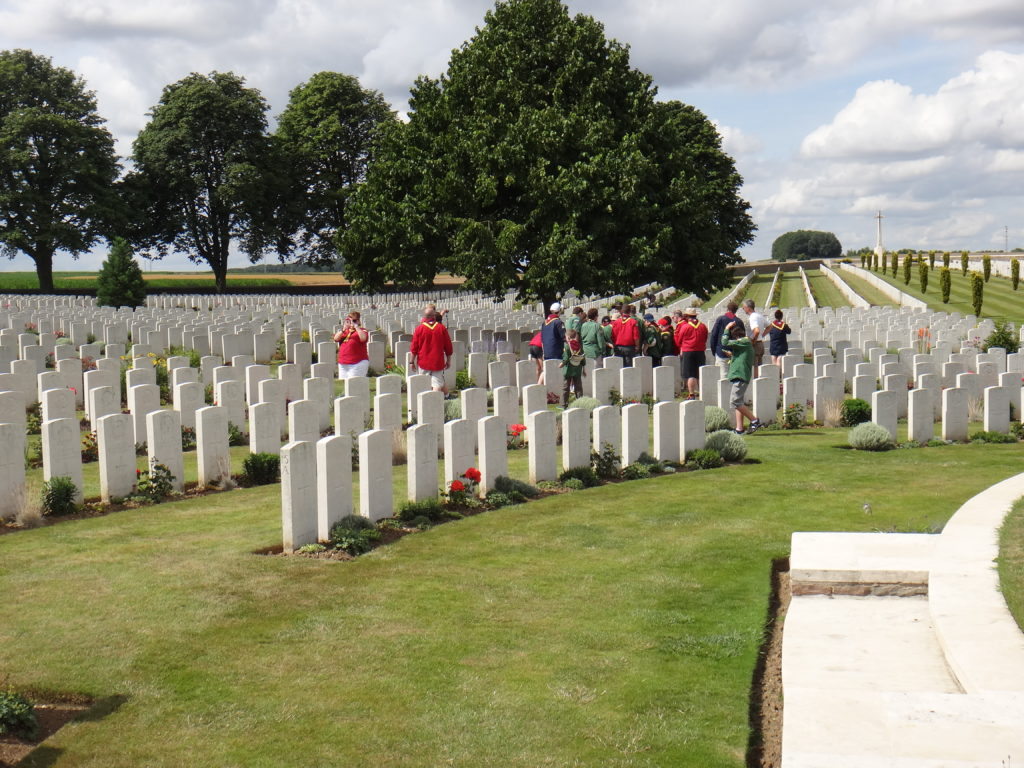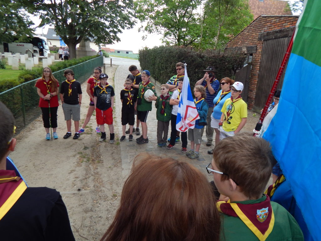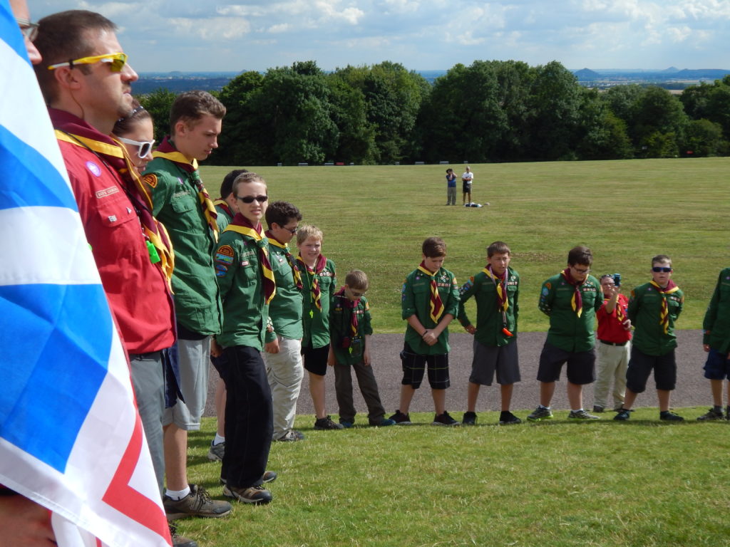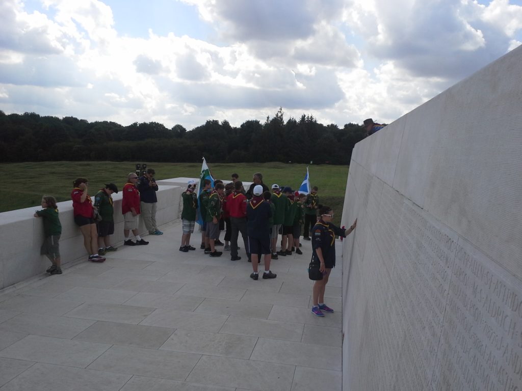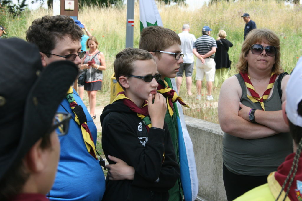 After the tour it was time for Hunter’s investiture.  Adding one more member to the world’s largest peace movement seemed an appropriate tribute to those who died here at the Battle of the Somme.  It was a tough ceremony to get through, and very few of us had dry eyes by the end of it, but we were all immensely proud to be Scouts in that moment.  Quite the crowd ended up forming around us, but we hardly noticed.