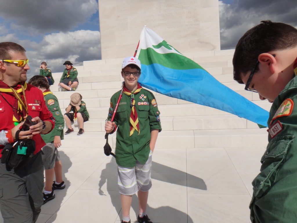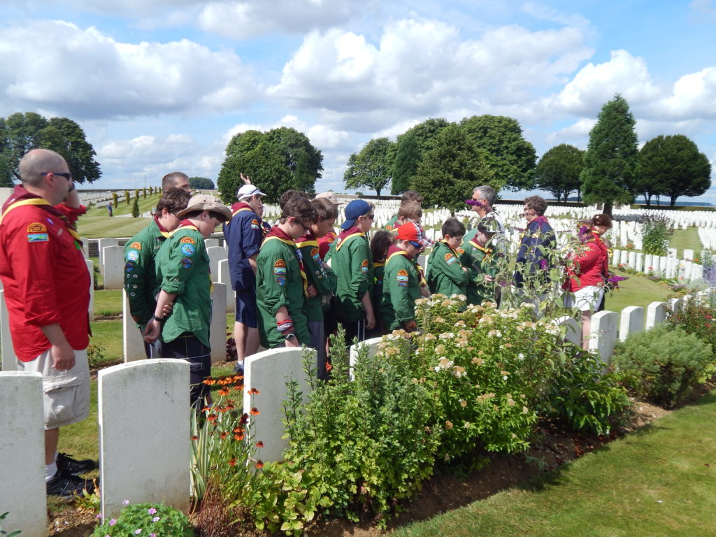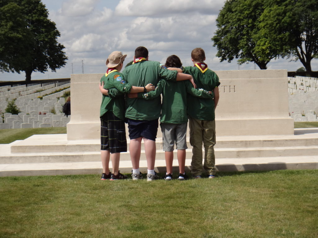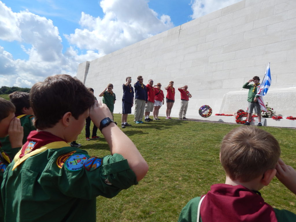After the tour it was time for Hunter’s investiture.  Adding one more member to the world’s largest peace movement seemed an appropriate tribute to those who died here at the Battle of the Somme.  It was a tough ceremony to get through, and very few of us had dry eyes by the end of it, but we were all immensely proud to be Scouts in that moment.  Quite the crowd ended up forming around us, but we hardly noticed.