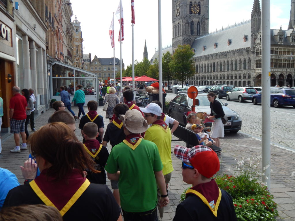 While Carl was regaling us with the history of the Essex Farm he received a call about his father… who’s health had taken a sharp turn for the worse…  In one breath Carl told us his dad was dying, and in the next he continued on about how great Canada is… as a Troop, we told Carl to go home, and we return to Ypres to take care of ourselves for the evening.  Family first! Carl is “one of us” and we take care of our own 🙂
