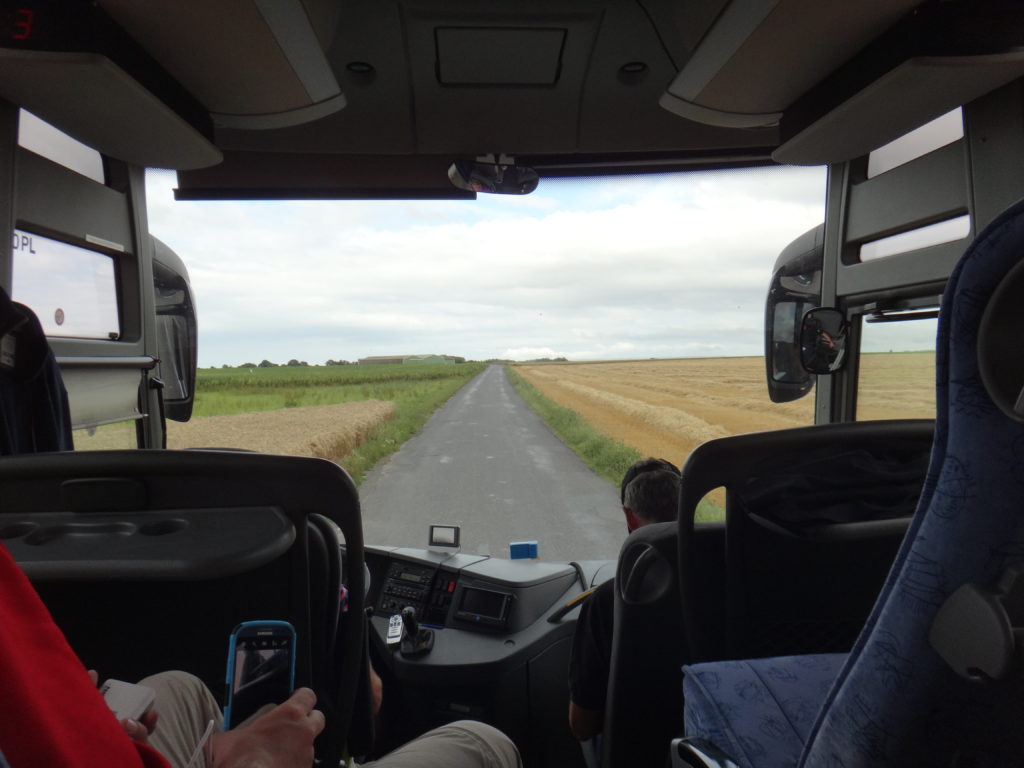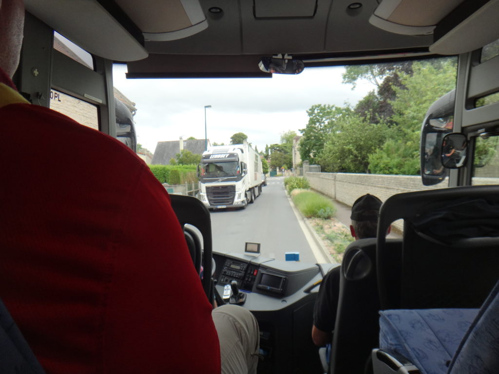 With very little enthusiasm, we all got back on the bus… not easy to leave Juno Beach.  So our trip towards Dieppe was far from uneventful as the farmers were protesting and periodically setting fire to tractor tires on various highways… this kept our tour on the rural (and very narrow) back roads of France.  As you can see from the pictures, it was a BEAUTIFUL drive!  At one point our unbelievably skilled bus drivers ended up having to turn around the bus on a street that I would have trouble turning my minivan around in!  The people in the small community were equally impressed as a nice older lady stood by and applauded, lol!