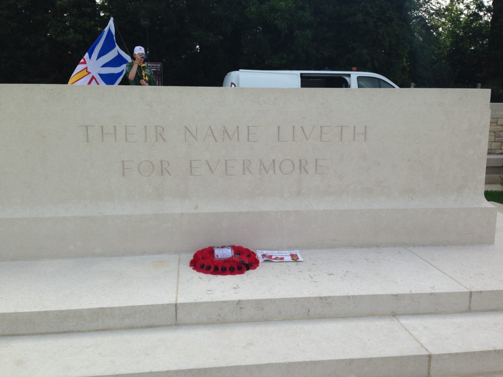 When we arrived at Beaumont-Hamel, in a lot of ways it was like coming home.  Seeing the Newfoundland and Labrador Flag waving alongside the French and Canadian Flags was pretty fantastic.  We stopped for a picnic lunch (first time in Europe that we didn’t eat lunch on the bus) and then made our way to the visitors’ centre.