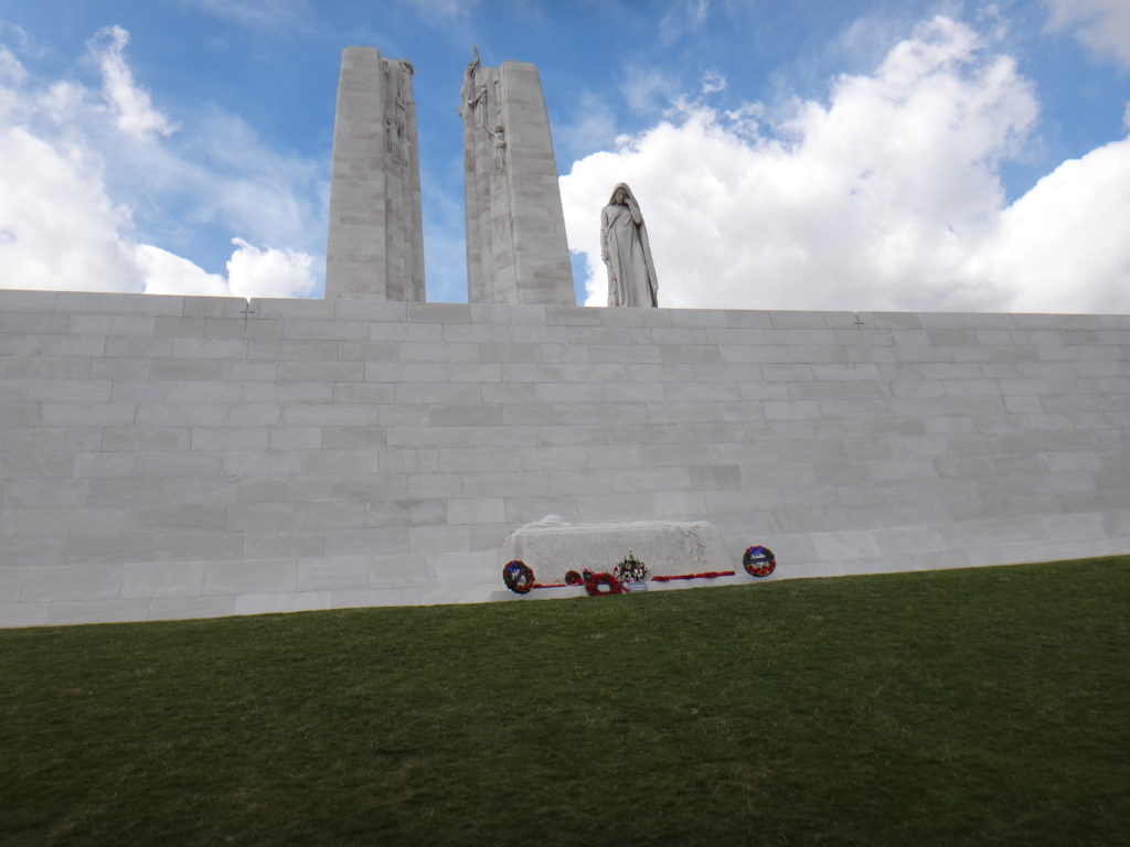 After a VERY early wake-up we loaded up and hit the road for Vimy Ridge.  The memorial at Vimy Ridge serves as Canada’s monument to the 11,169 Canadians who never came home from the first World War but have no graves as their bodies were never recovered.  This is our monument to the missing heroes who were never properly put to rest.  The Battle of Vimy Ridge was the first time all three divisions of the Canadian Armed Forces fought together under a Canadian Commander, and the Canadian victory at Vimy Ridge distinguished Canada as a nation apart from United Kingdom for the first time.  So going in to this day, we knew it was going to be another very big day.
