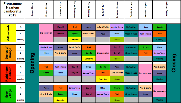 Here is our schedule from the 2015 Haarlem Jamborette: